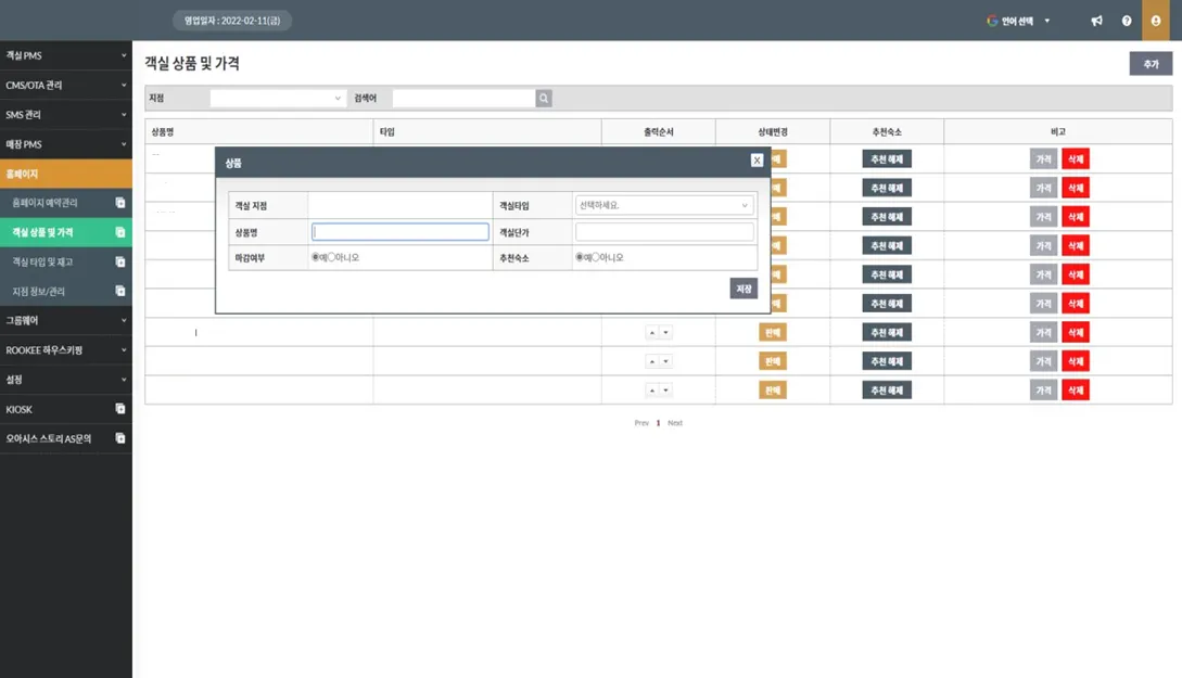 iii) 상태변경란의 [마감] 버튼으로 객실판매 마감이 가능합니다.