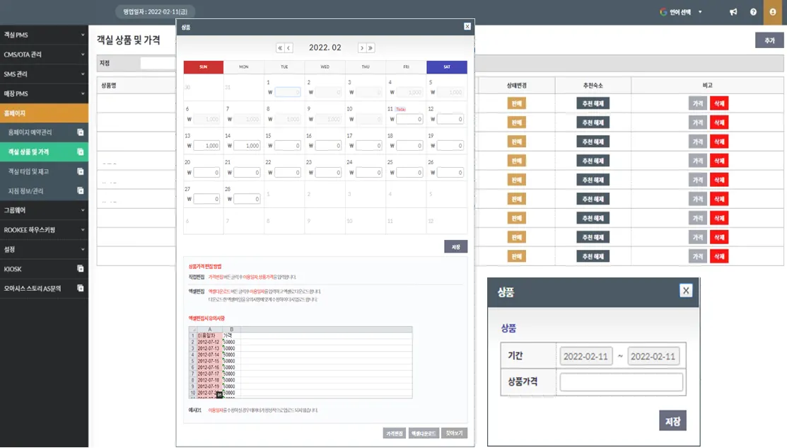 : 캘린더 하단 [가격편집] 클릭 → 내용입력 후 [저장]