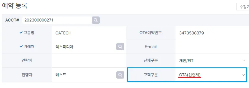 온라인(OTA)으로 인입되는 예약 건 중 선결제 예약의 경우 자동으로 입금처리.