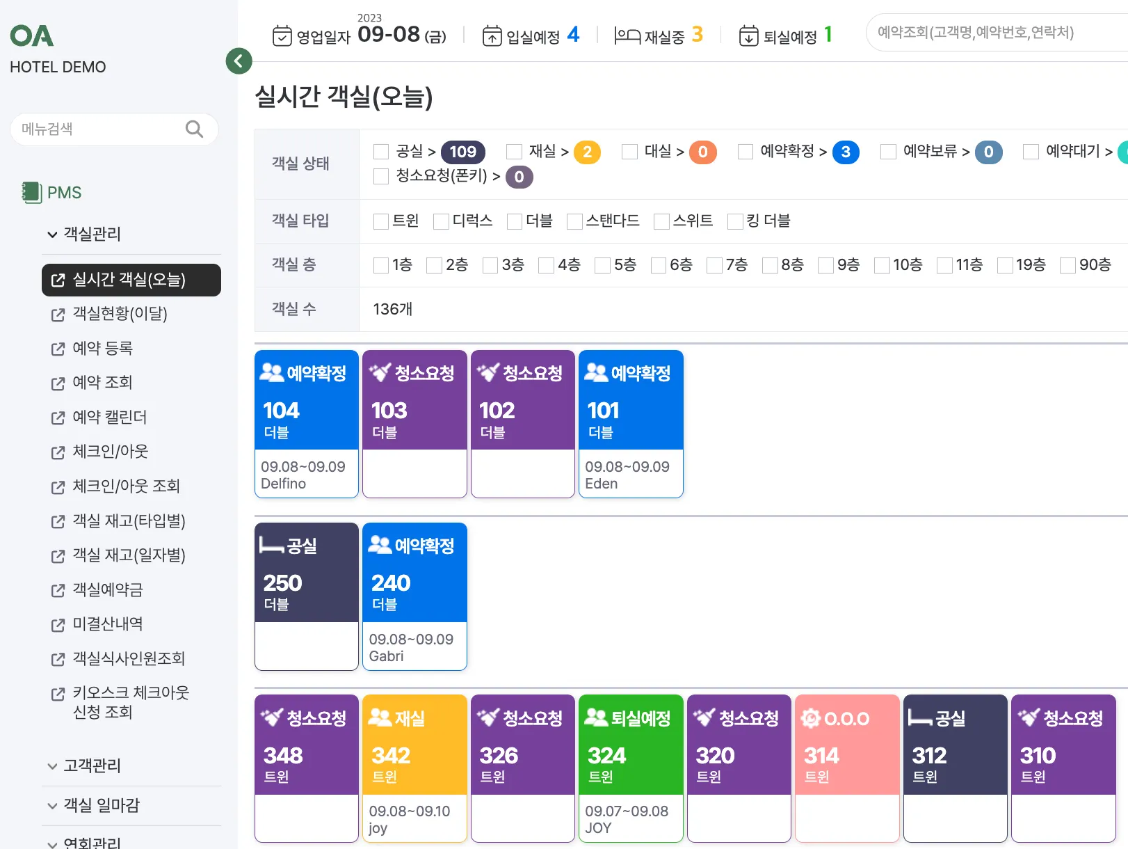 A 데모에는 있는 기능이지만 사용자 호텔 측 PMS에는 안나오는 경우, 상담을 통해 사용 가능하도록 설정해드릴 수 있습니다. 추가 정보가 필요한 경우 저희에게 문의해주세요.