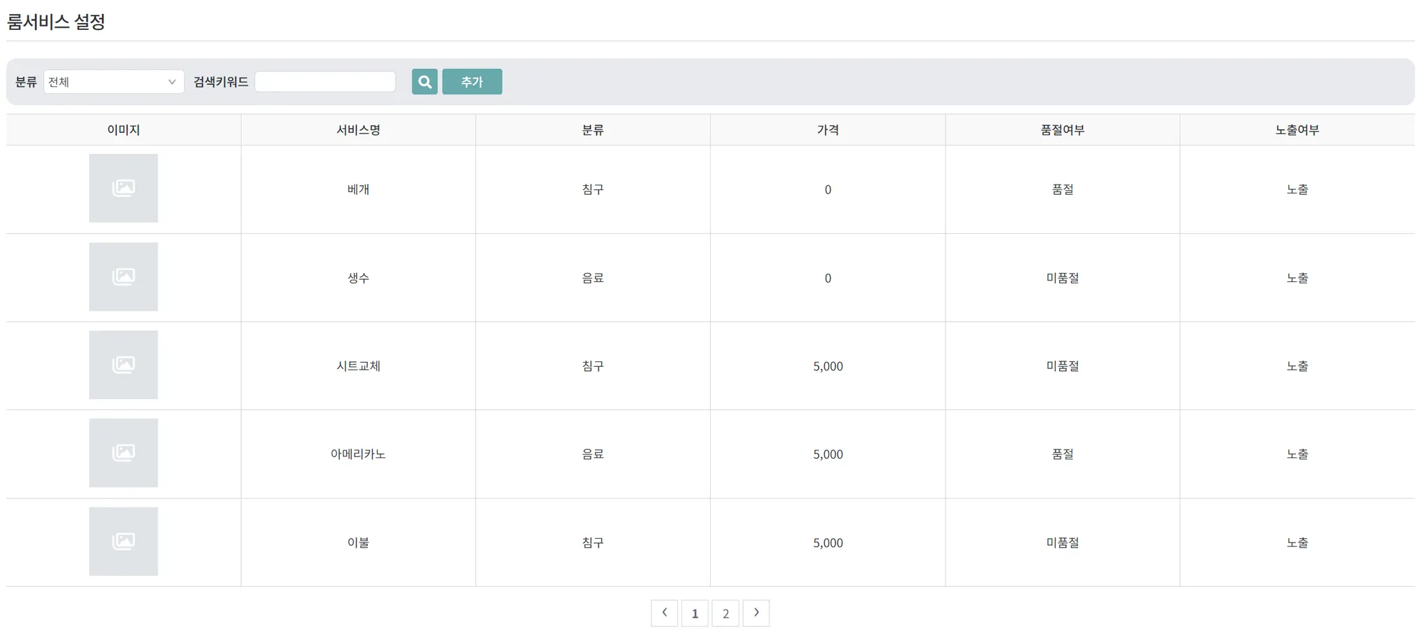 ๋ฃธ์๋น์ค ์ถ๊ฐ / ์์ / ์ญ์ ์ค์ ํ์ด์ง
