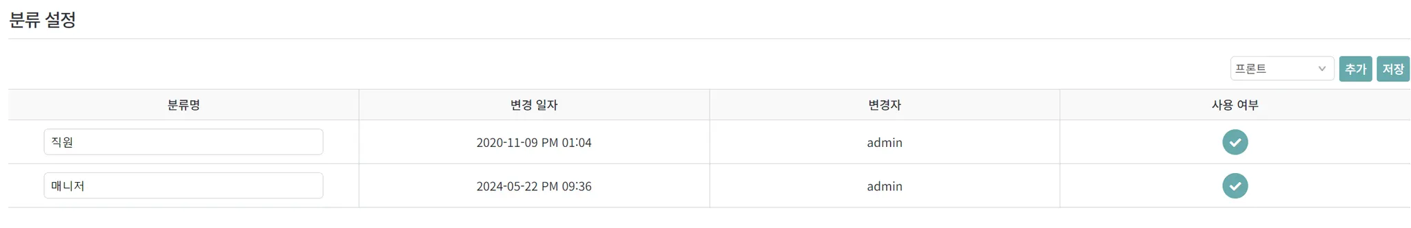 ๊ฐ ํญ๋ชฉ์ ๋ํ ๋ถ๋ฅ ์ถ๊ฐ / ์ฌ์ฉ์ฌ๋ถ ํธ์ง ๊ฐ๋ฅ