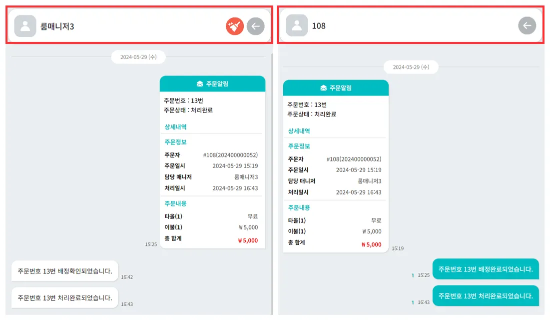 โ ๋ฃธ๋งค๋์ ๊ฐ ๋ณด๋ธ ์งํํํฉ ๋ฉ์ธ์ง๋ ํด๋น ๋ฃธ์๋น์ค๋ฅผ ์ฃผ๋ฌธํ ๊ฐ์ค ์ฑํ