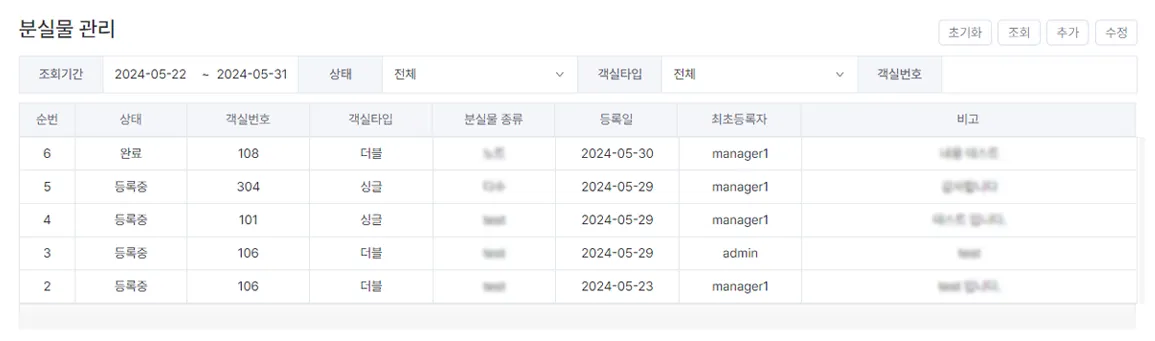 ๋ถ์ค๋ฌผ ์ํ์ ๋ฐ๋ผ ๋ฑ๋ก, ์๋ฃ, ์ทจ์ ์ ํ ํ ์ ์ฅ ๊ฐ๋ฅ
