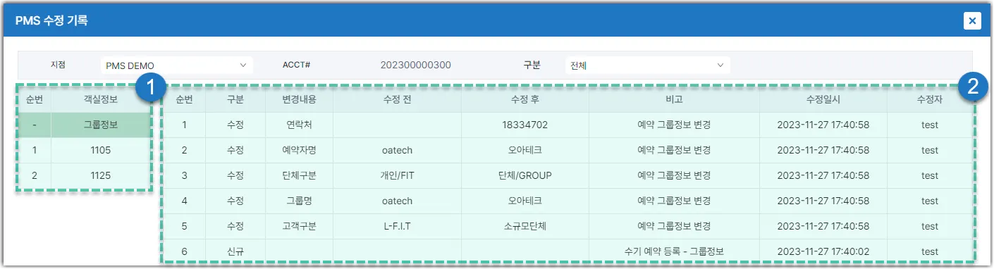 - 직원의 실수로 예약 정보를 변경했을 때, 변경하기 전 기존 내용을 확인 할 수 있습니다.