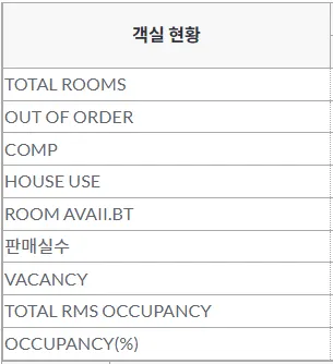 TOTAL RMS OCCUPANCY : 총 판매 객실