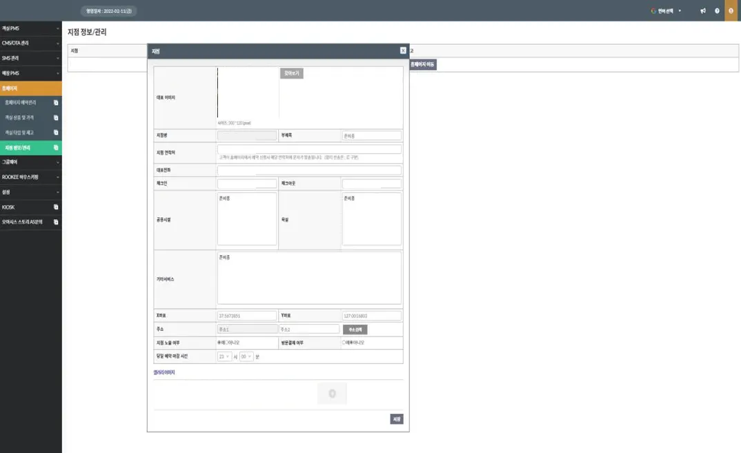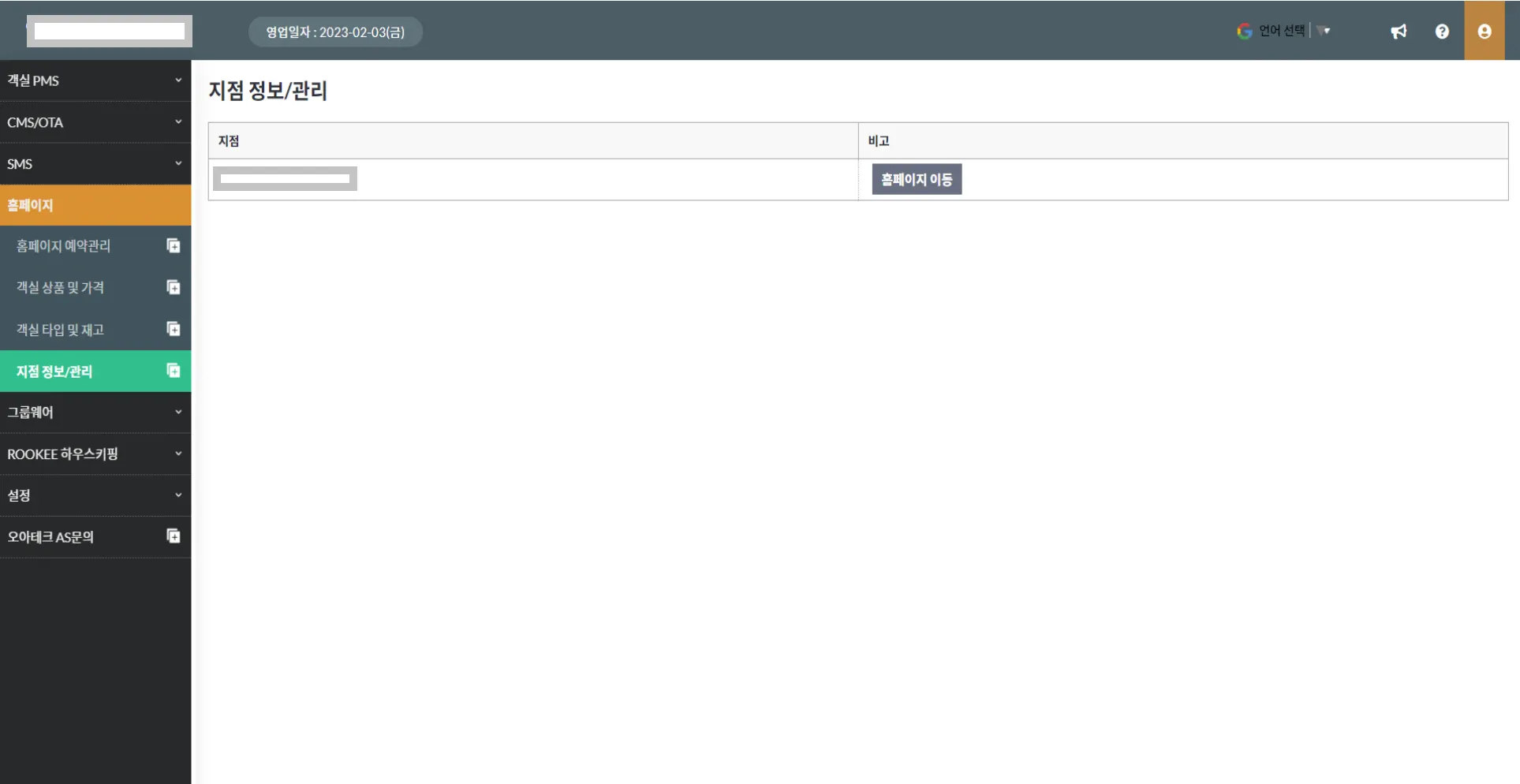 지점명은 초기 세팅 시 고정값으로 기재됩니다.