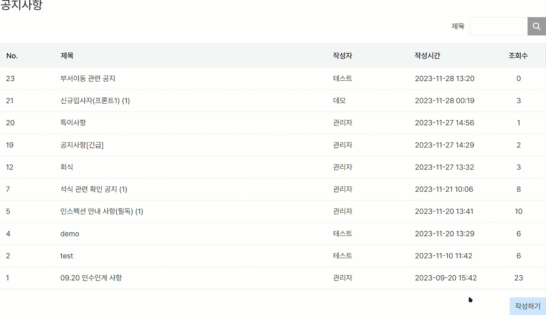 - 기존 공지/게시물도 함께 보이기 때문에 내역 관리도 가능합니다.