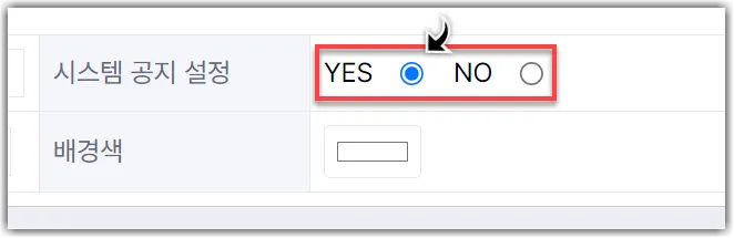 강조하고 싶은 게시물이라면 ‘전체 공지’를 ‘Yes’로 선택하세요.