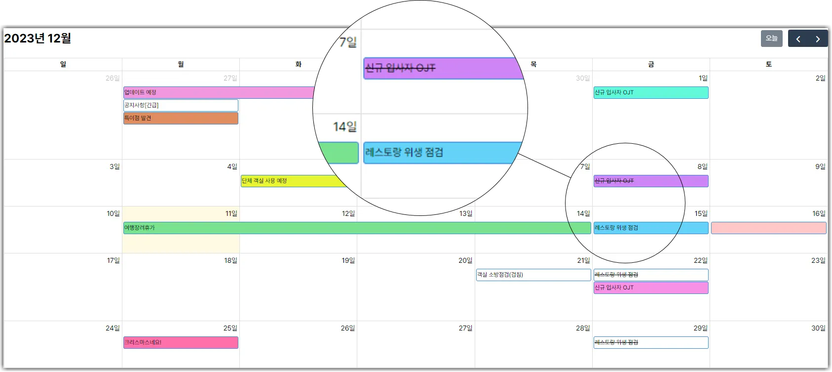 - 그날의 업무 지시를 효율적으로 전달할 수 있으며, 업무 상 필요한 매뉴얼과 자료 등을 등록할 수 있습니다.