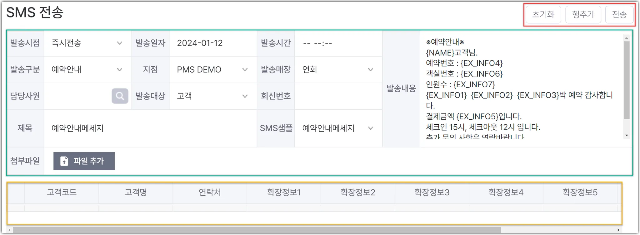 확장정보1~7 : 발송내용에 {EX_INFO1} ~ {EX_INFO7} 입력 시 입력된 확장정보 내용이 자동으로 변환된다.