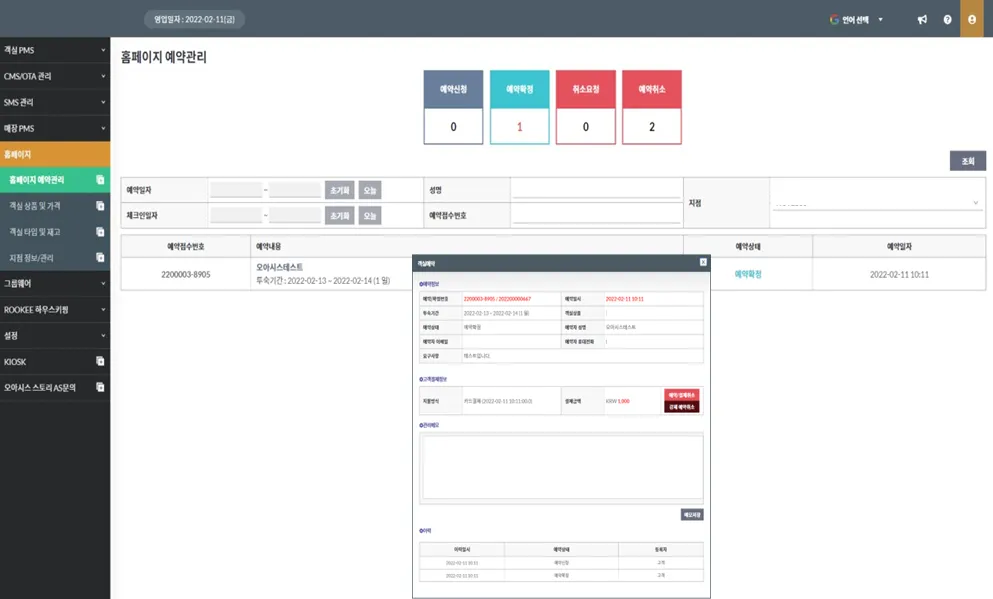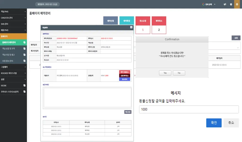 ** 홈페이지 예약 취소 시 PMS 자동 반영(예약취소, 타입재고 복구)