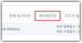 우측 상단 예약체크인 버튼을 클릭합니다.