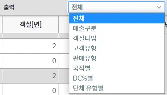 객실[일] | 인원[일] | 금액[일] | 비율[일]