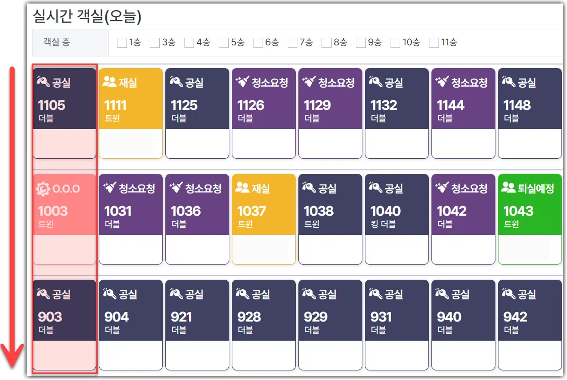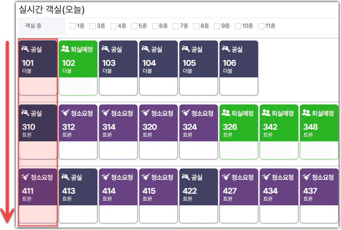 이 기능을 통해 사용자는 자신이 원하는 순서로 객실 상태를 더욱 편리하게 확인이 가능합니다.