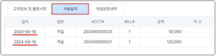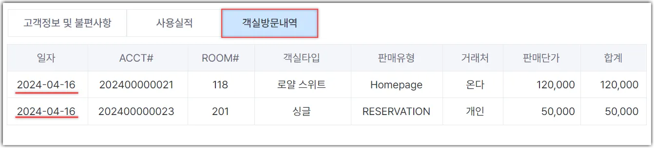 객실방문내역