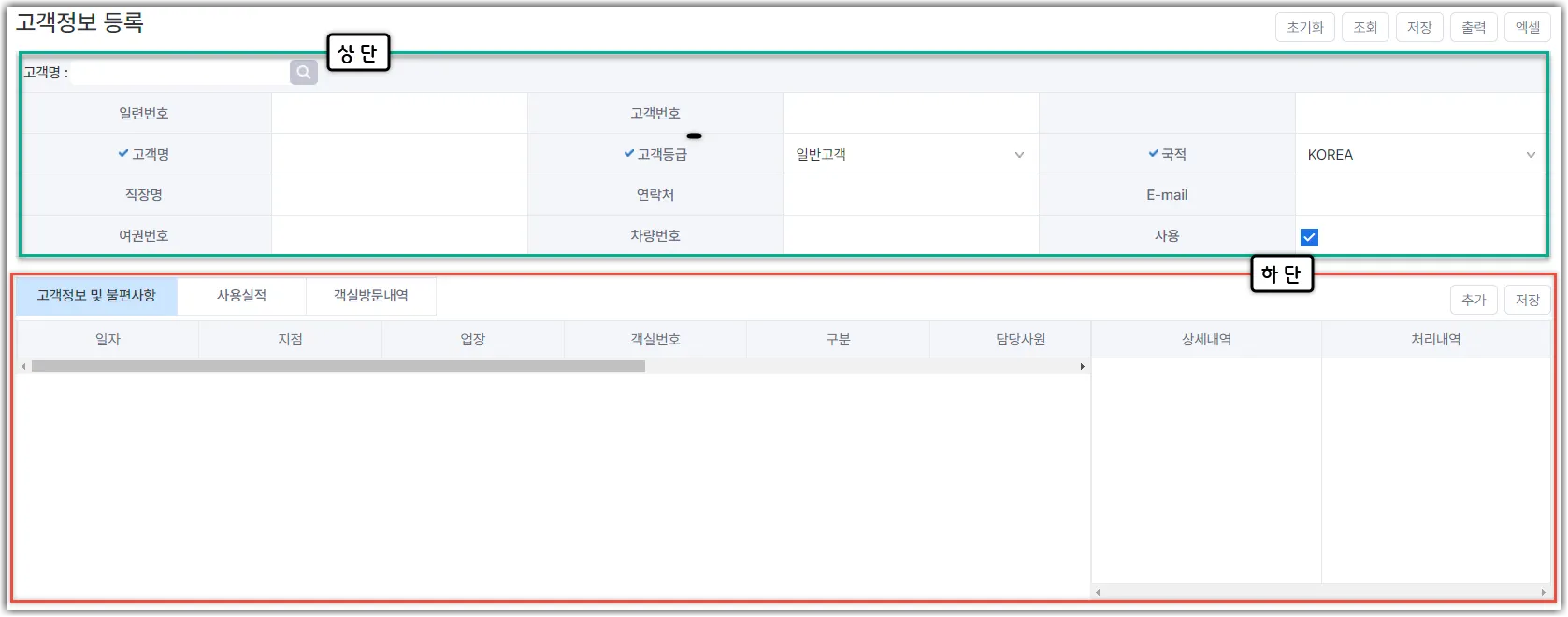 저장 : 고객 정보 기입 후 저장합니다.