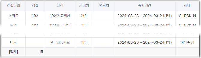 객실타입 | 객실 | 고객 | 거래처 | 연락처