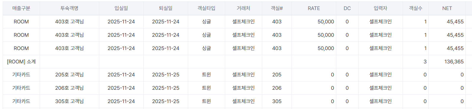 ROOM (객실료)