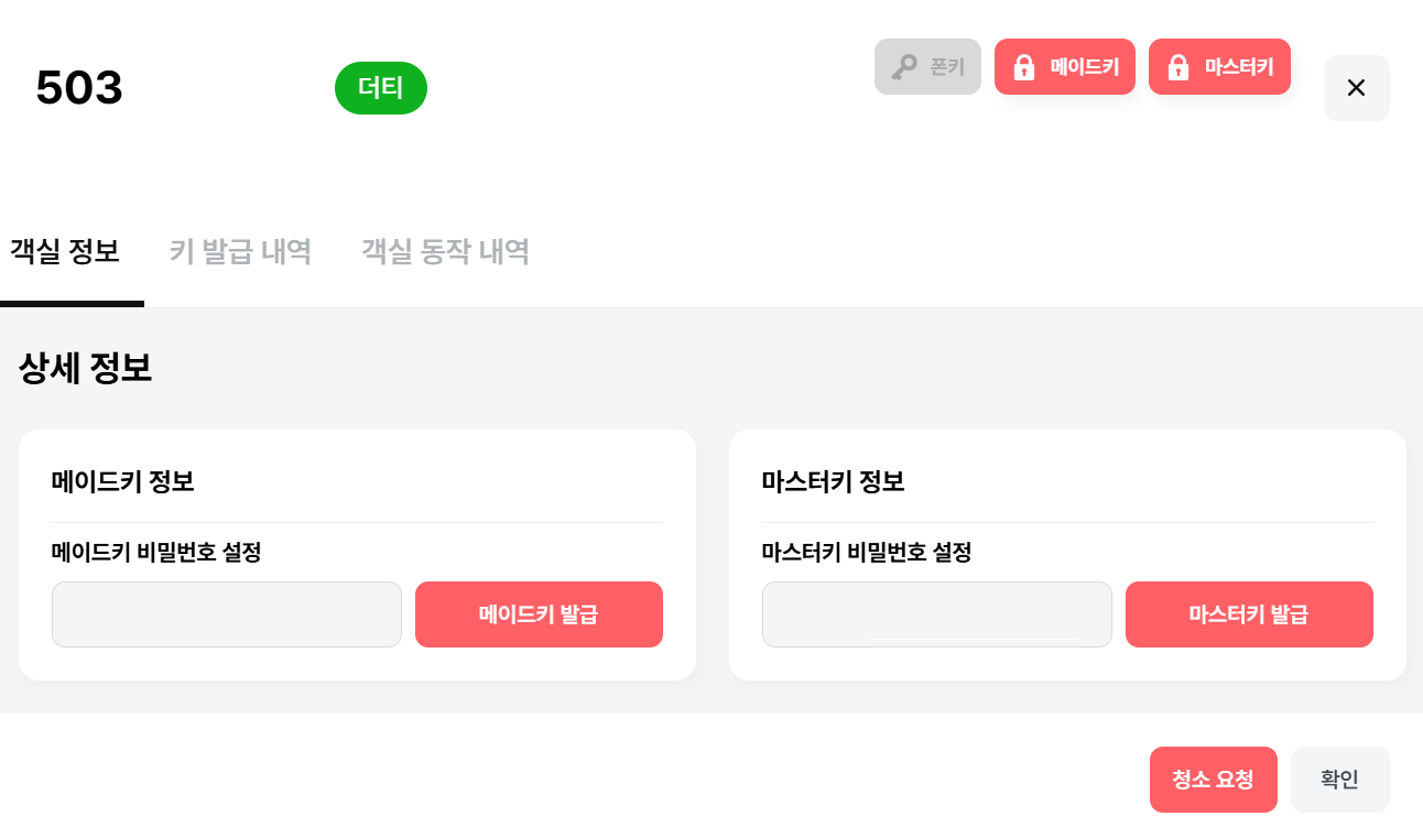 키 발급 상태 : 발급된 키 표시 (폰키/메이드키/마스터키)