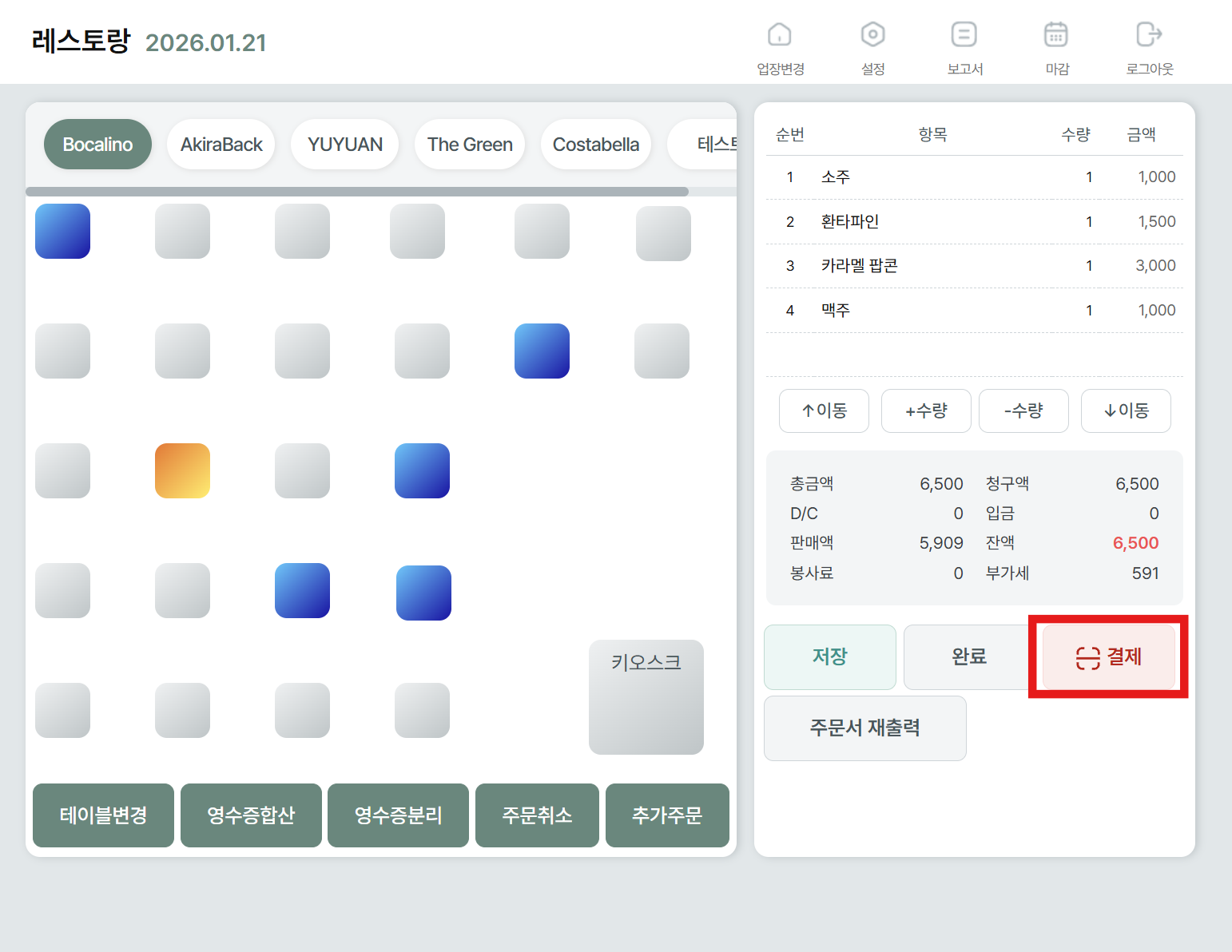 결제할 테이블 선택