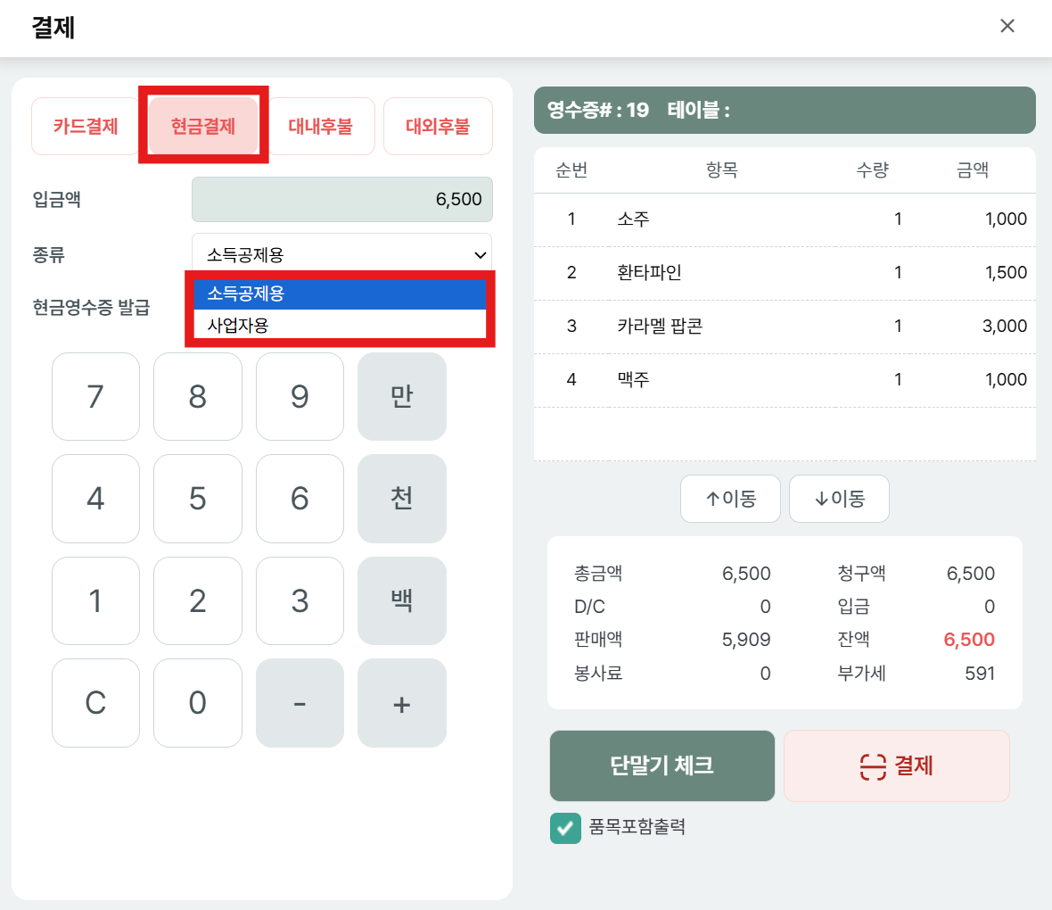 종류 선택 (소득공제용, 사업자용)
