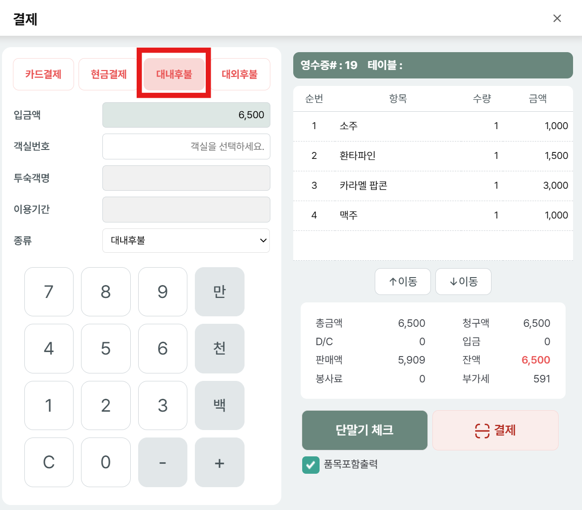 ※ 객실에서 후불 결제 가능