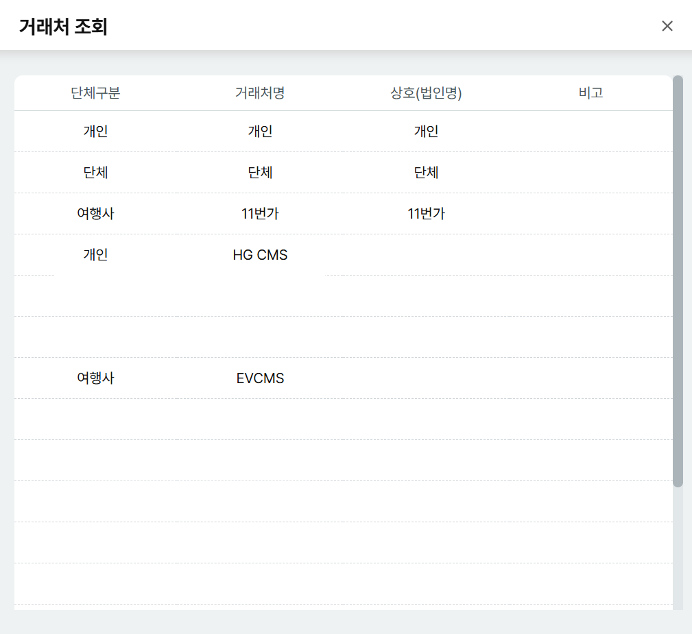 거래처 선택