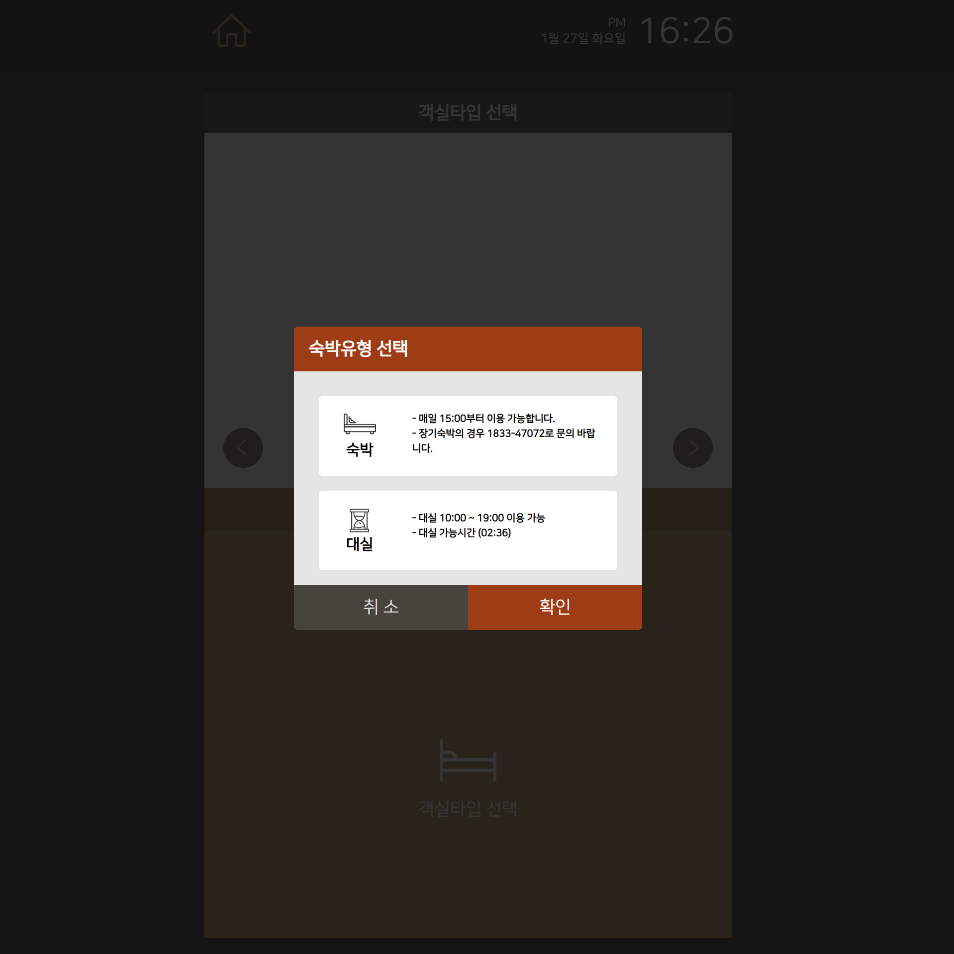 숙박과 대실 중 하나의 숙박유형을 선택 합니다.