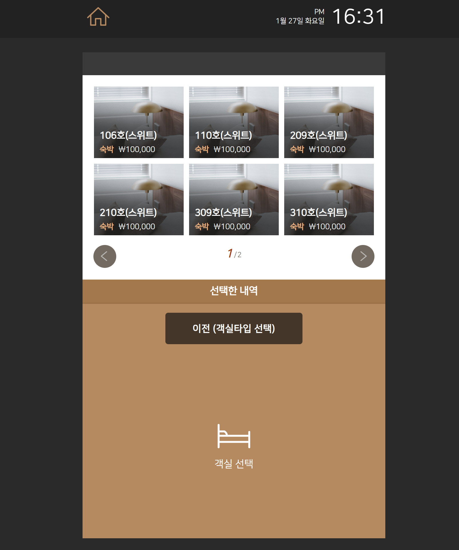 객실 타입을 선택 합니다.