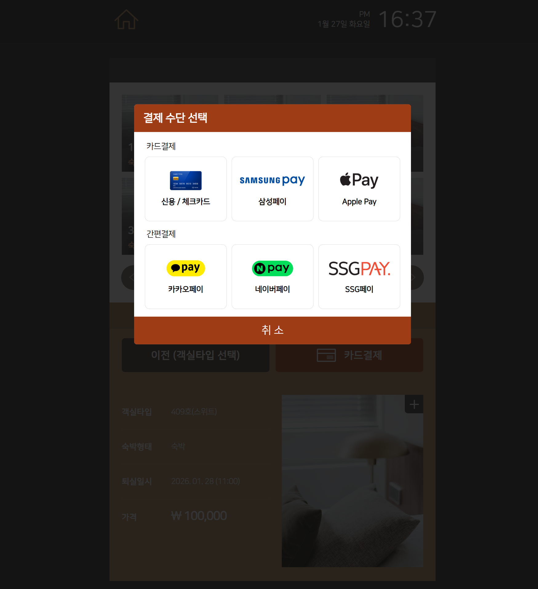 객실 번호를 선택 합니다.
