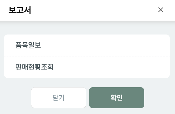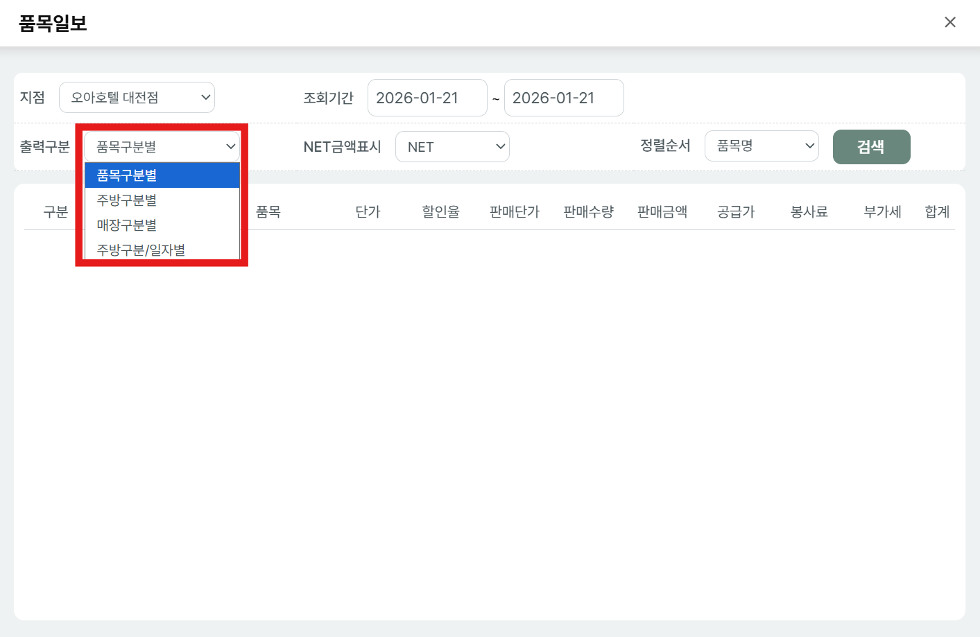 검색 시, 해당 기간에 판매 된 품목 별 정보 확인 가능