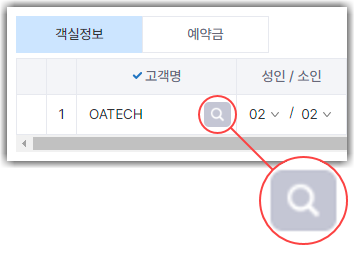 b. 객실 칸 돋보기를 눌러 객실을 배정합니다.