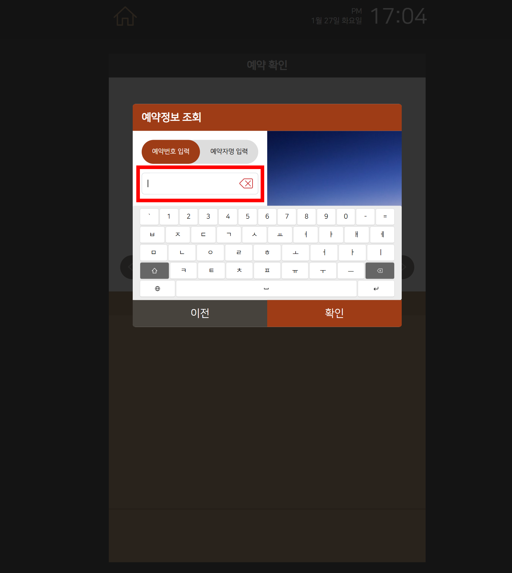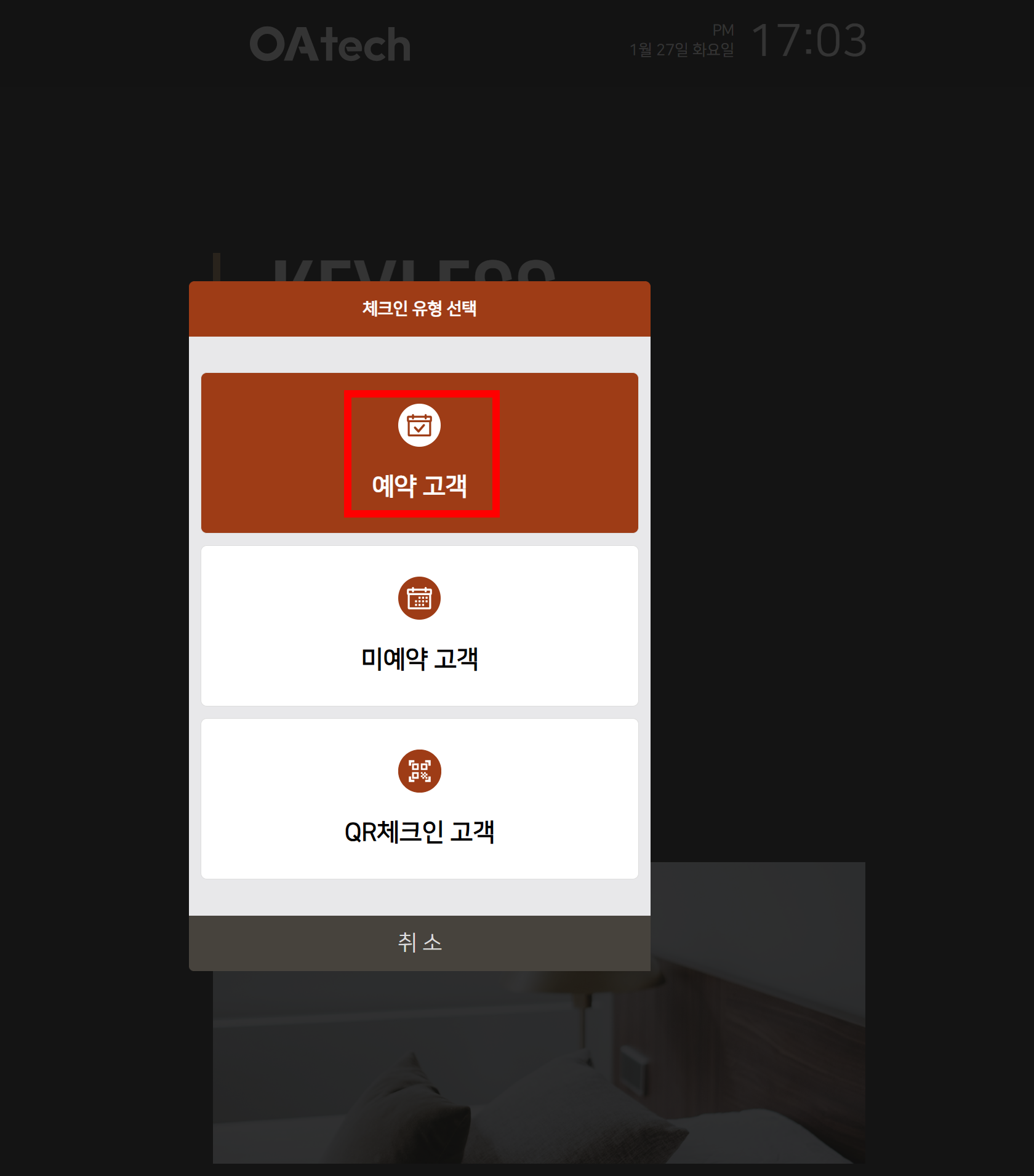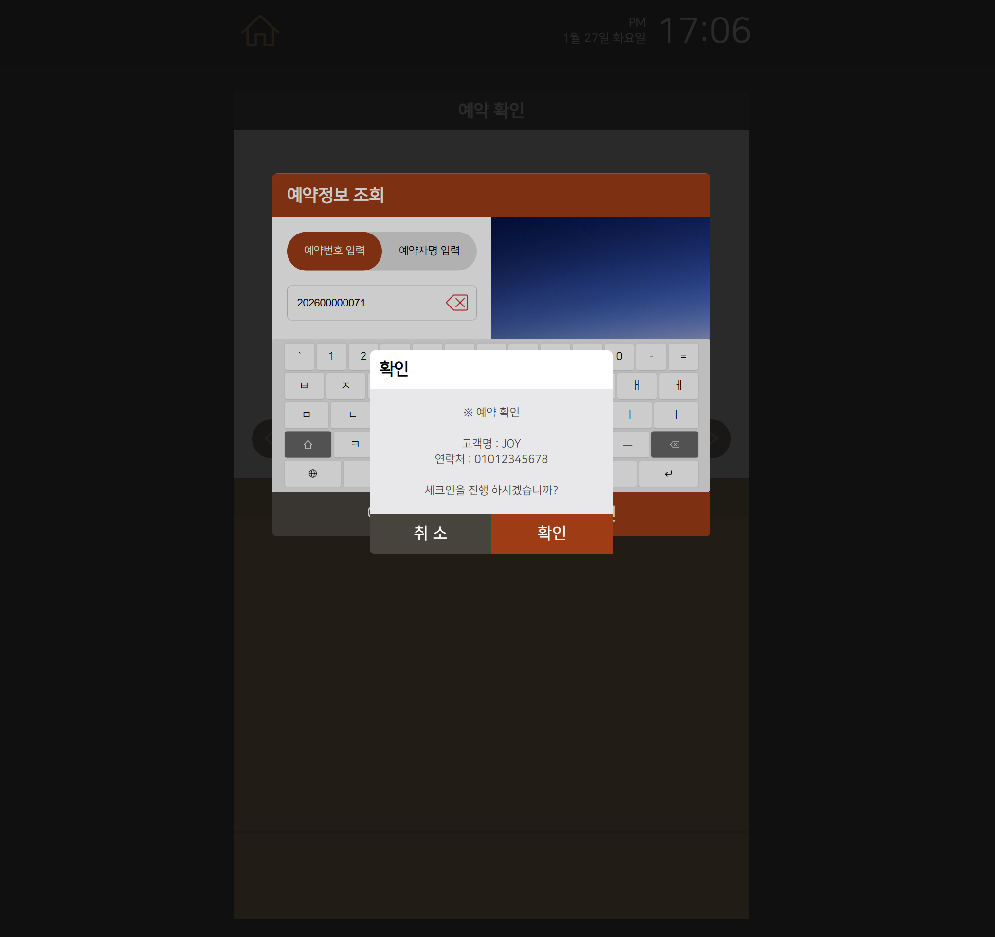 사전 예약 고객의 키오스크 체크인 절차입니다.