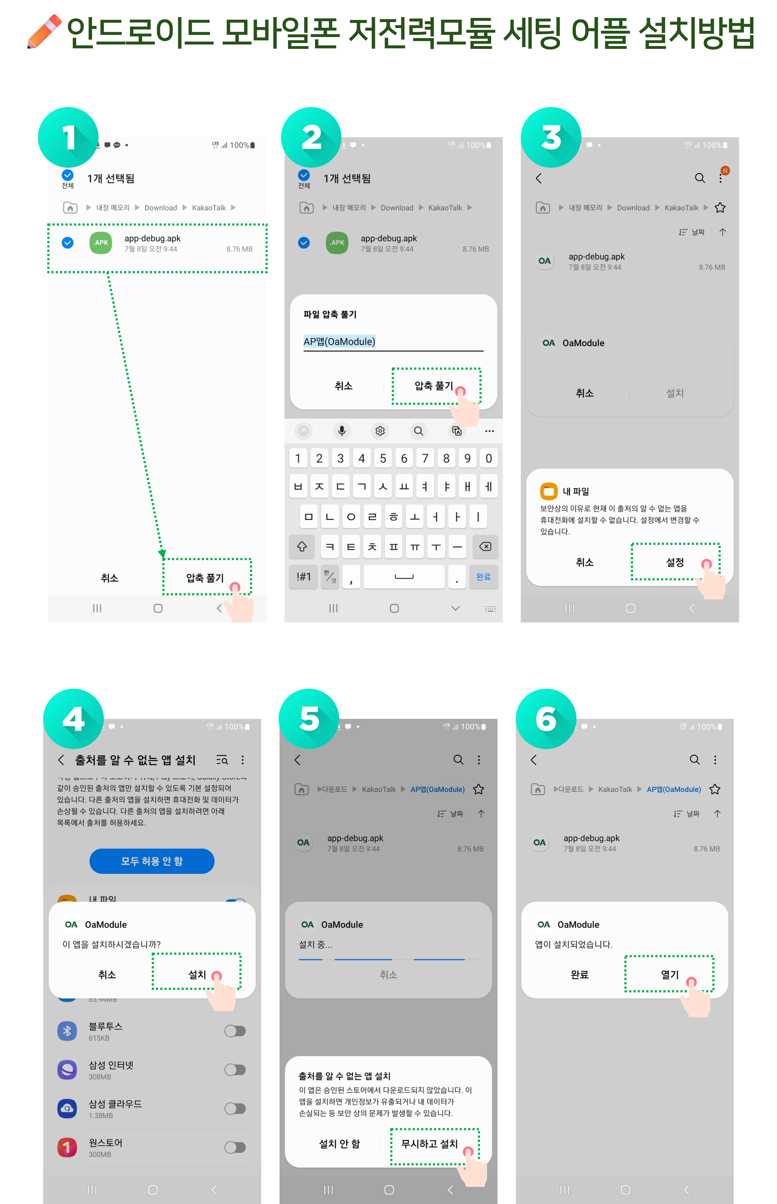 아래 “AP앱(OaModule).zip” 파일을 📱스마트폰으로 전송 및 다운로드 해주세요.