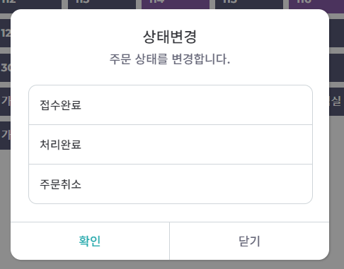 주문알림 우클릭 → 주문 상태 변경 가능