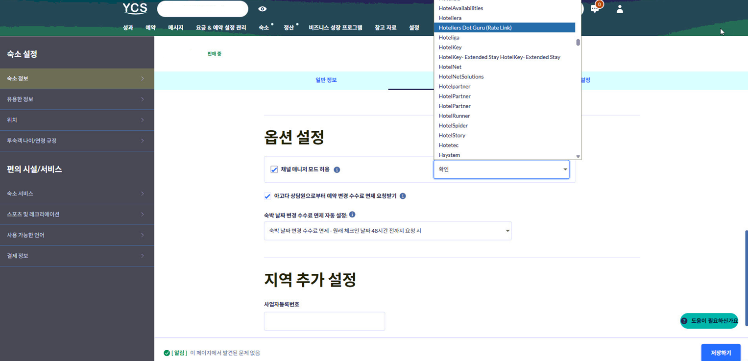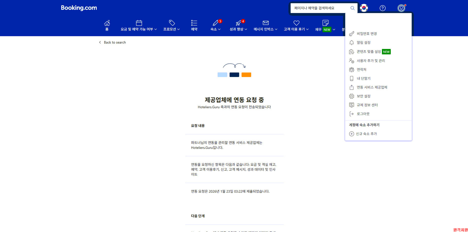 CMS(Hoteliers.Guru) 업체에서 연동 승인이 필요합니다.