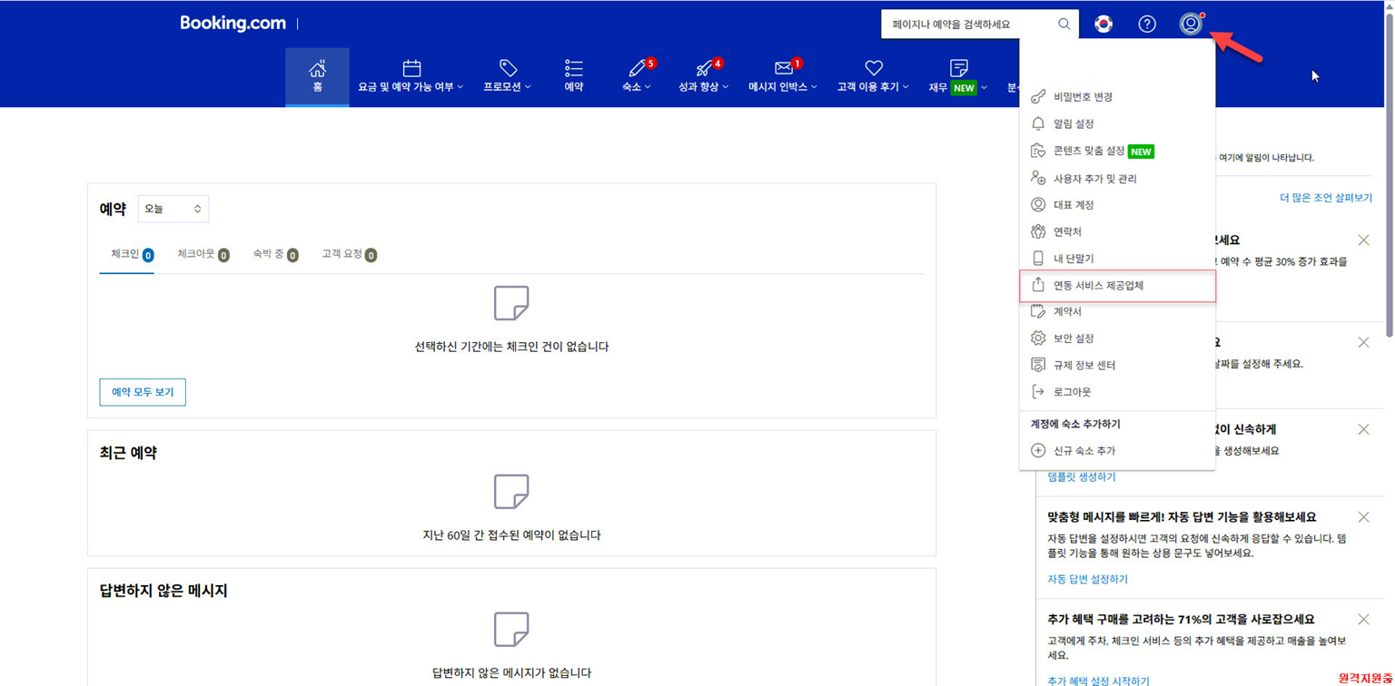 부킹닷컴 엑스트라넷에 접속합니다.