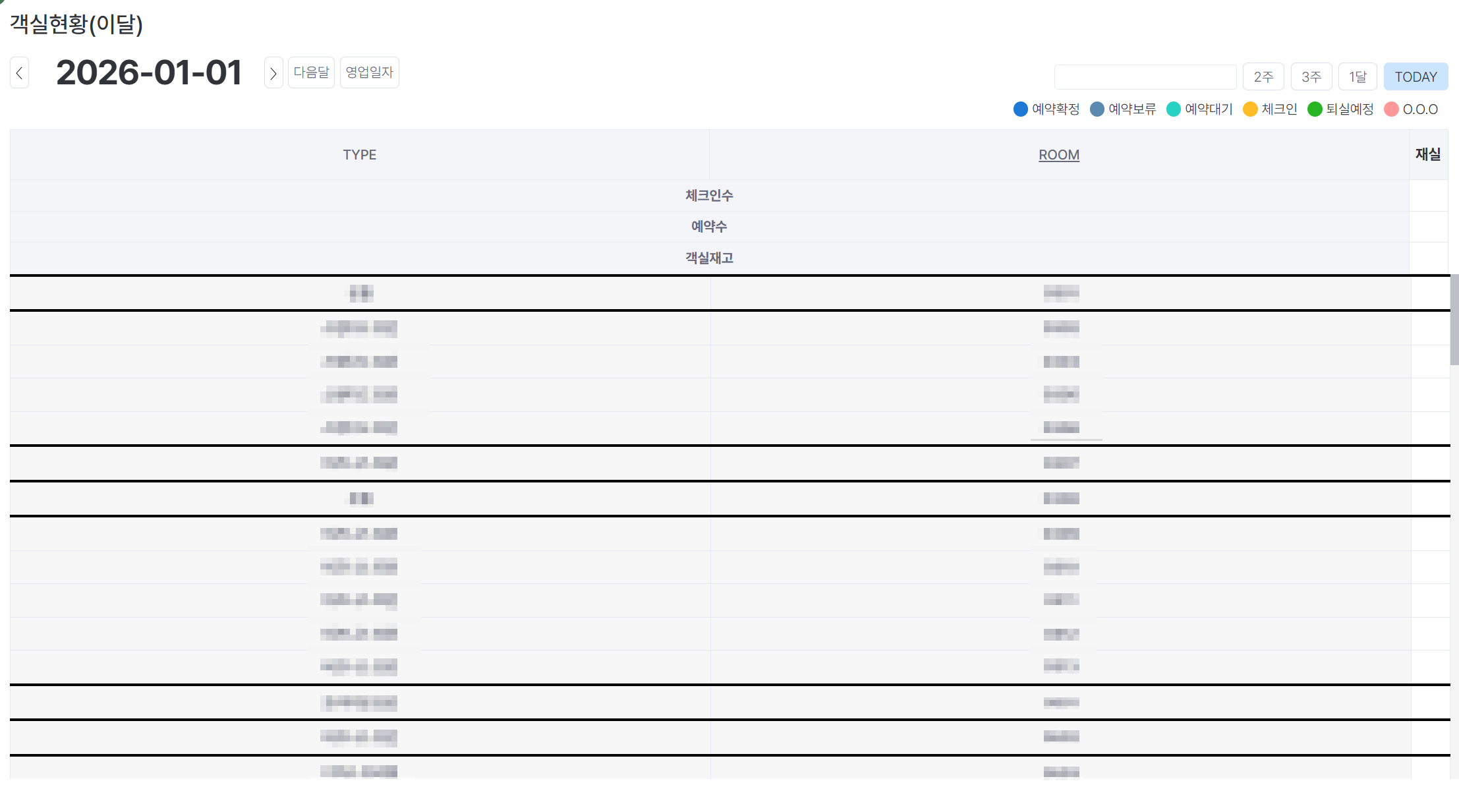 PMS 객실현황(이달) 화면이 안보여요.
