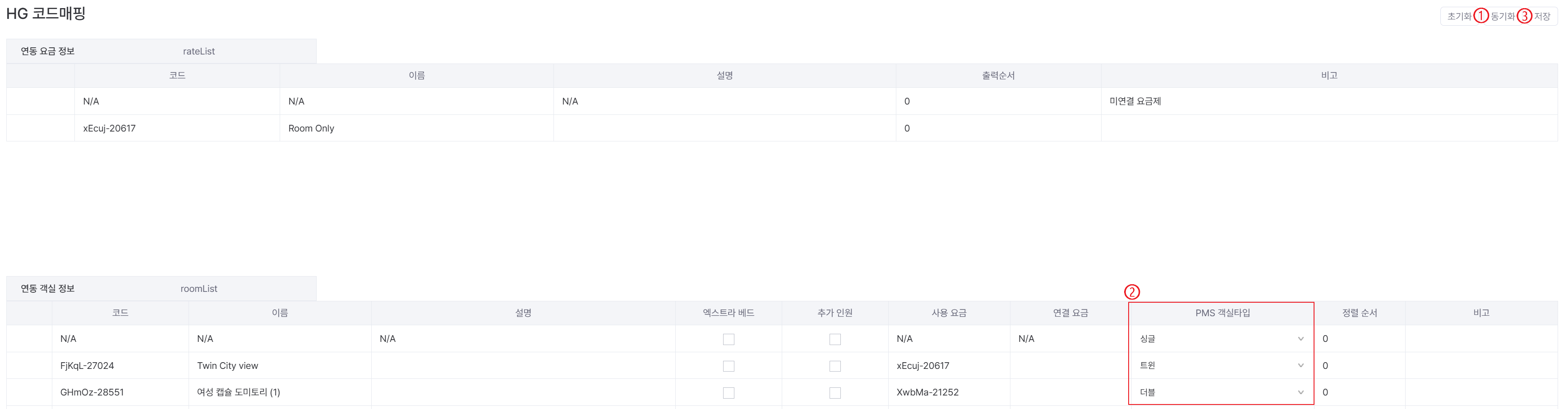 객실타입이 변경되었거나, 추가되었다면 코드(객실타입) 매핑이 필요합니다.